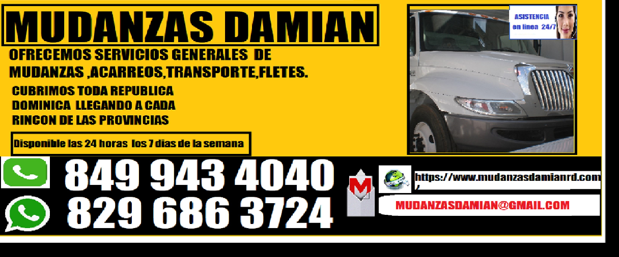 MUDANZAS DAMIAN, Es una Empresa dedica a los servicios de ,TRANSPORTE, ofrecemos servicios en diferentes categorías, de vehículos, como, es camiones, camionetas, , denominado «MUDANZAS DAMIAN CARGA», un equipo especializado en trasladar todo lo relacionado a carga, objetos personales, mudanzas, mercancías y mas a nivel Nacional: Como de igual manera brinda los servicios de EN GENERAL, diseñamos un plan para cada una o cualquier necesidad que pueda tener dentro y fuera de la empresa, nuestra gama de servicios en transporte esta enfocada en cumplir las mas extremadas necesidades. Es de interés de MUDANZAS DAMIAN, brindarle un servicio, con los más alto estandares de calidad.»